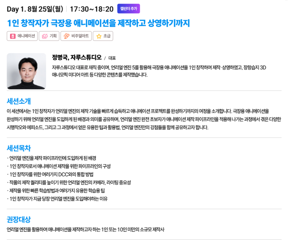 1인 창작자로서 언리얼 엔진을 활용해 극장용 애니메이션을 제작하고 상영까지 성공한 사례가 있다고 해요! 주인공은 바로 지루스튜디오의 정영국 대표님인데요. "혼자서 어떻게 가능했을까?" 하고 궁금해하는 분들이 많으실 거예요.