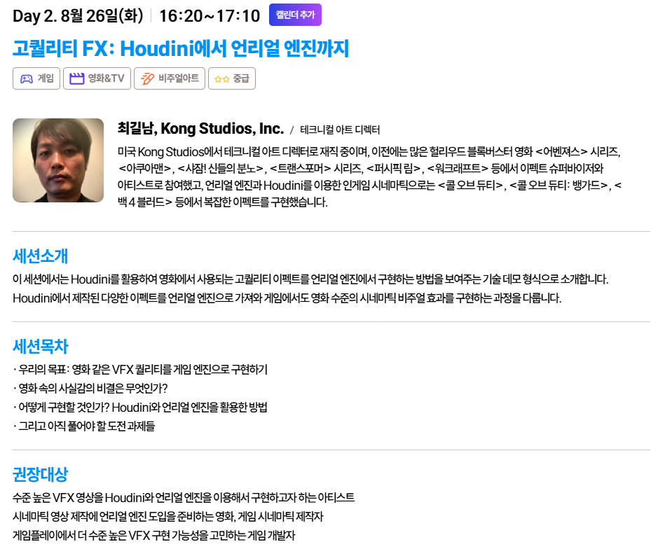 하지만 영화에 사용되는 고퀄리티 FX를 게임에 그대로 적용하기는 쉽지 않죠. 왜냐하면 게임은 영화보다 훨씬 제약이 많기 때문이에요. 그래서 오늘은 후디니(Houdini)와 언리얼 엔진을 활용해서 영화 같은 이펙트(FX)를 게임에 구현하는 방법에 대해 이야기해 보려고 합니다. 😊
