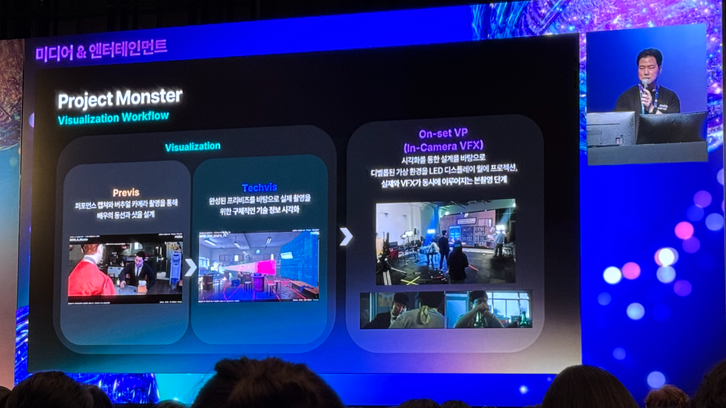 최근의 버추얼 프로덕션은 기술이 더욱 발전해서 고품질의 페이셜 캡처나 시네 카메라 리그 기능까지 구현되었습니다. 또한, 버추얼 스카우팅 및 퍼포먼스 캡처 기능도 크게 좋아졌다고 합니다. 이러한 기술적 진보는 모팩스튜디오의 사내 프로젝트인 < 몬스터>처럼 최신 플러그인을 실험하는 프로젝트에서도 활용되었습니다.