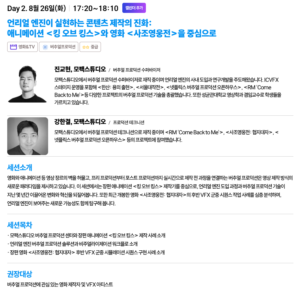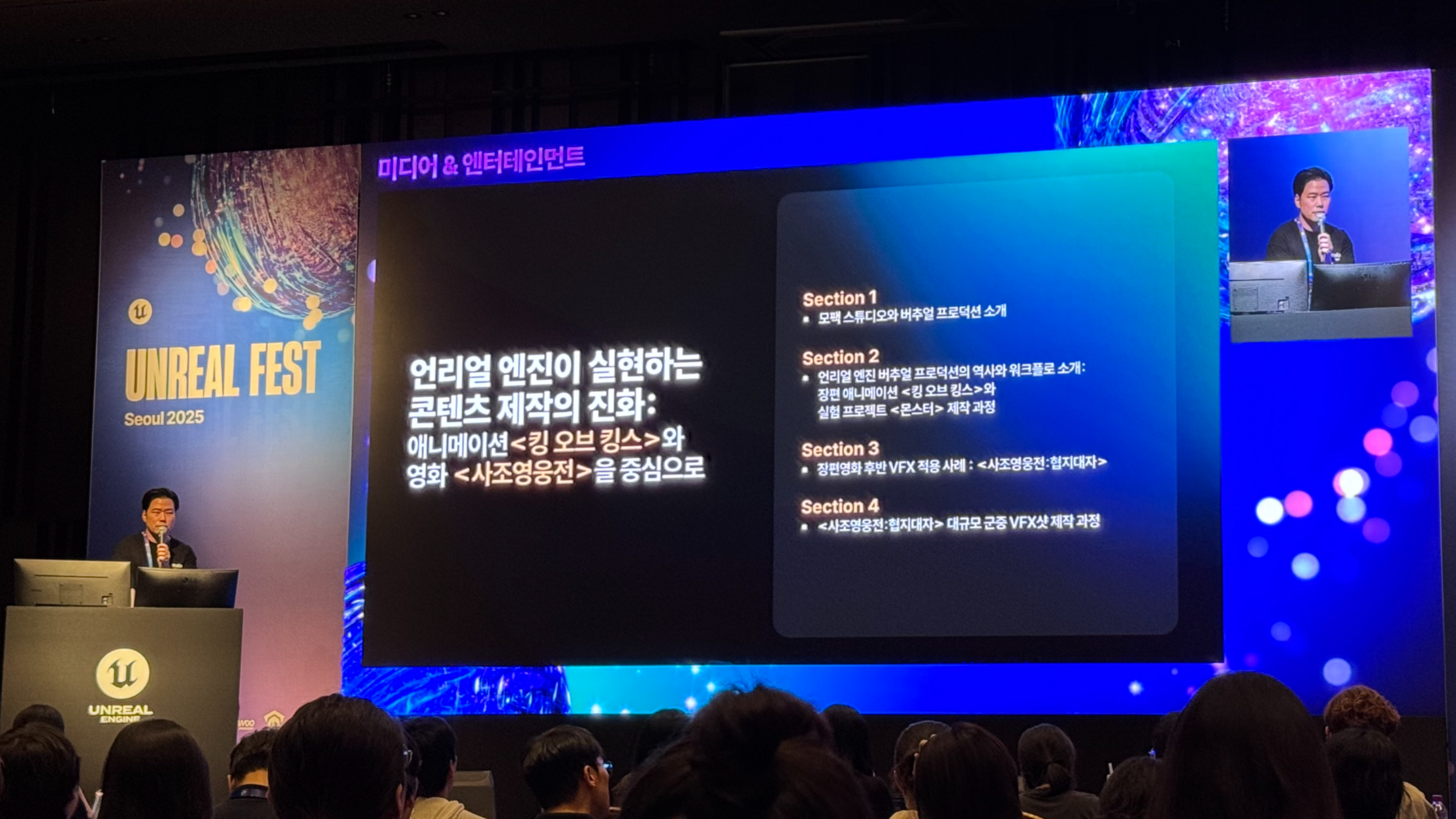 언리얼 엔진을 활용한 버추얼 프로덕션은 콘텐츠 제작에 혁신을 가져오고 있습니다. 리얼타임 렌더링 덕분에 리뷰 과정을 크게 단축할 수 있었고, 최소 인원으로도 최대의 작업을 가능하게 했다고 해요. 제작 효율성이 극대화되는 거죠.